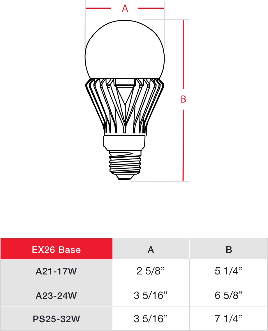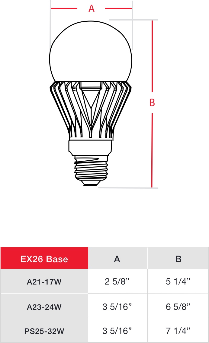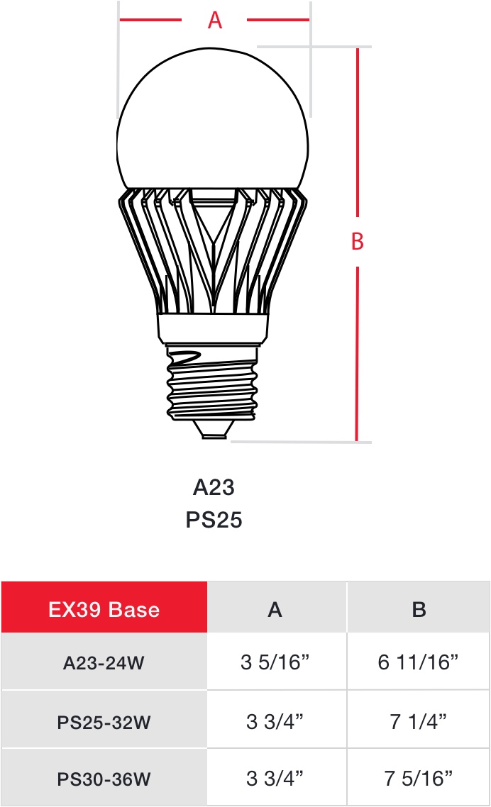 These A-Shape lamps are perfect for high-output applications that require omnidirectional light output. These bulbs can replace both high-output incandescent or HID lamps available in models up to 5,000 lumen!