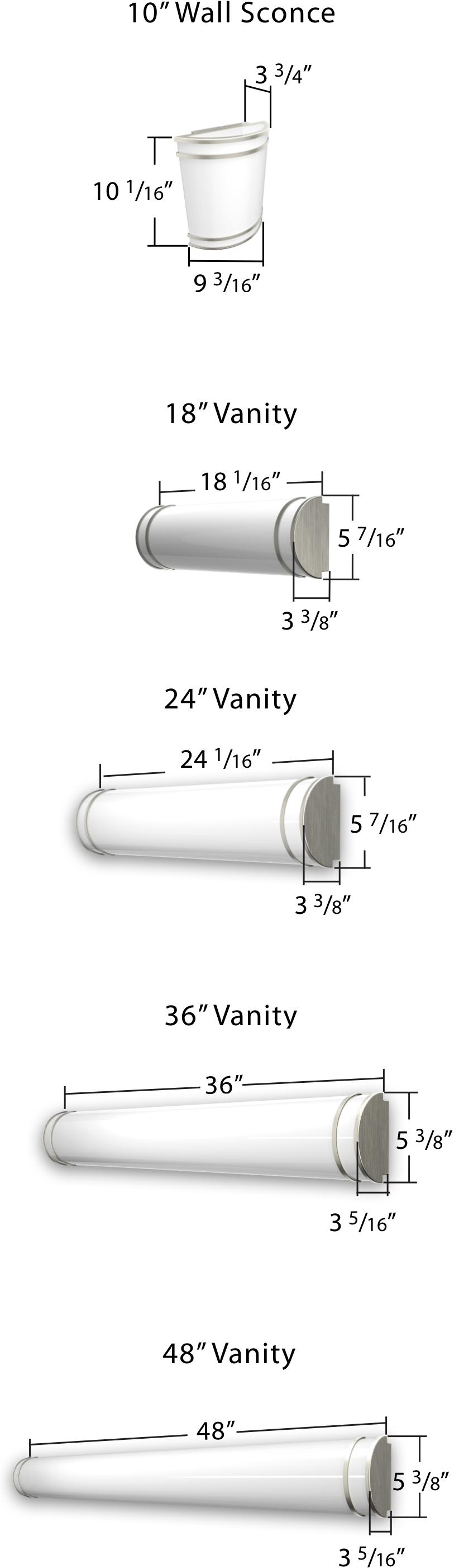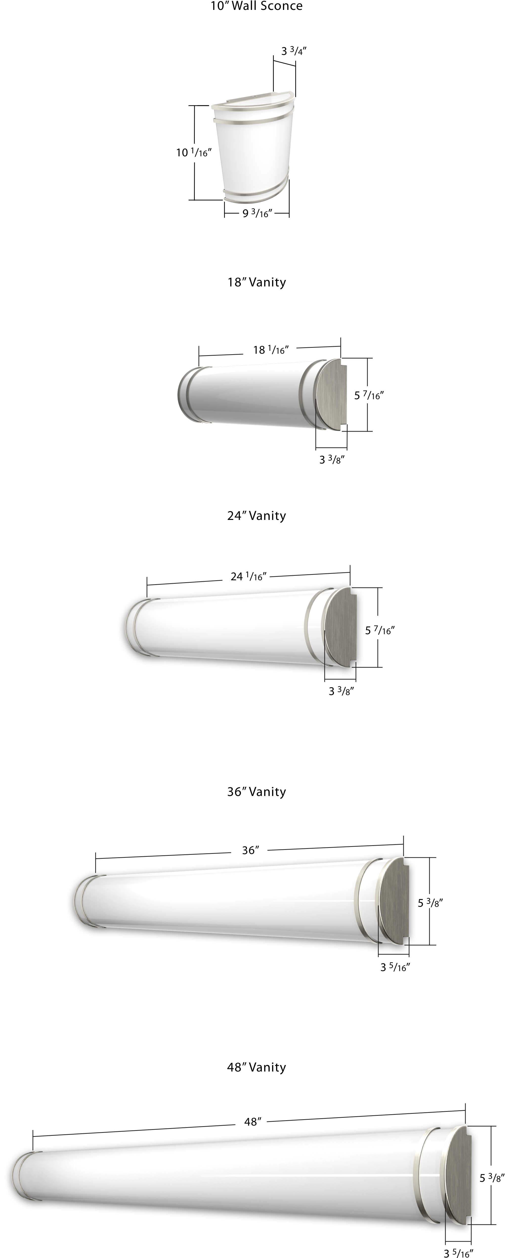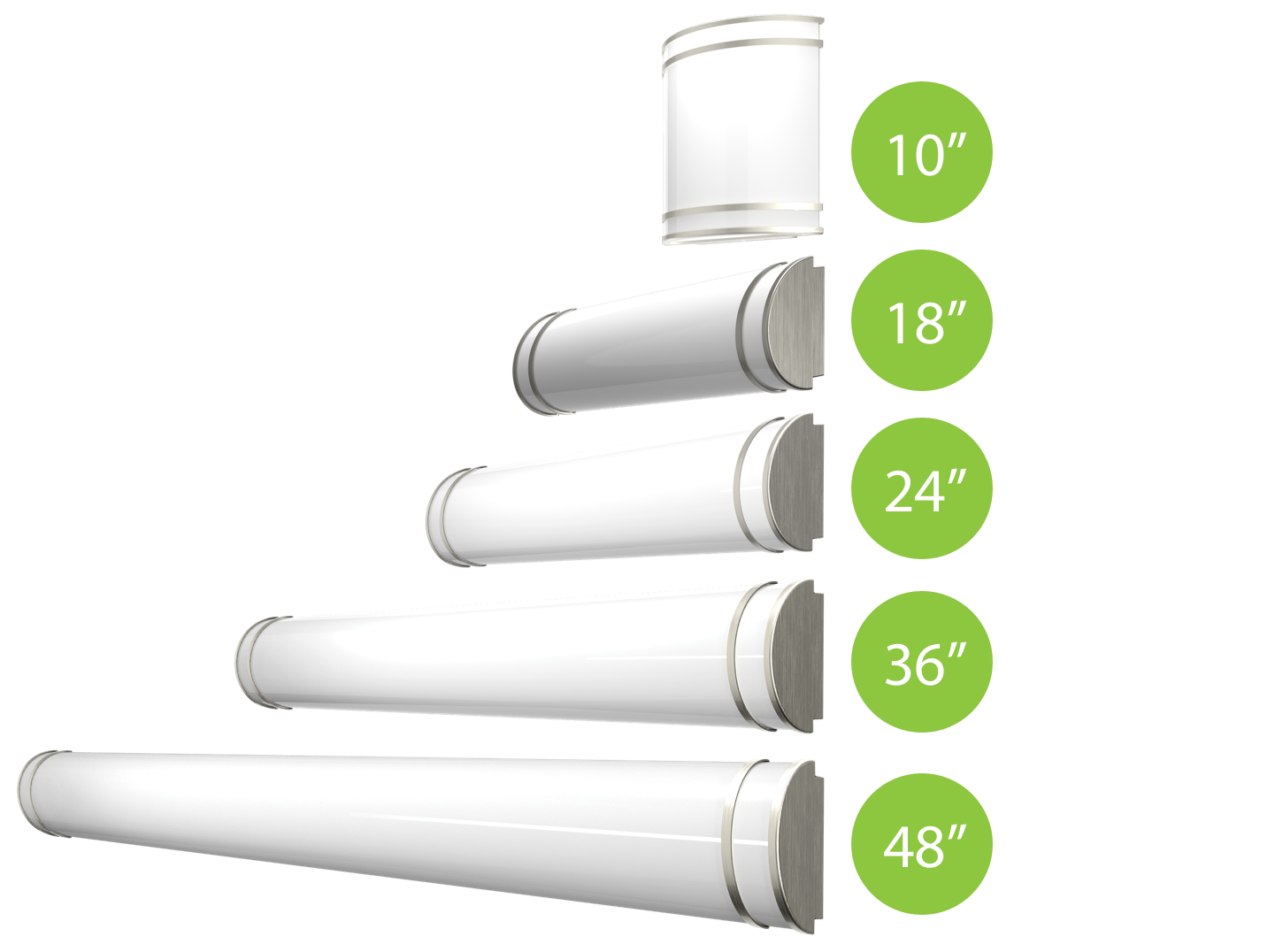 ENCHANT is available in a range of sizes—from compact 10" sconces to expansive 48" vanity bars. This versatile offering allows you to find the perfect scale and shape to complement your bathroom's unique layout and style.