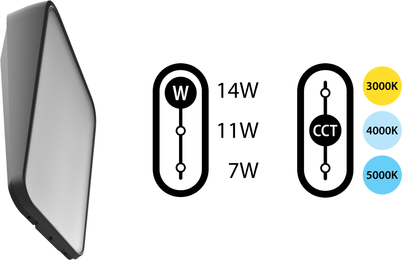 The redesigned ENTRA puts lighting control at your fingertips with three selectable wattages and CCTs in one fixture. Easily adjust settings to create the perfect ambiance for your entryway, walkway, or corridor with just one single SKU.