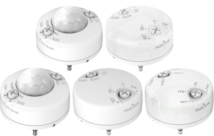 Plug in aux sensors allow for simple Bluetooth Mesh wireless-networked controls like occupancy and daylight harvesting.