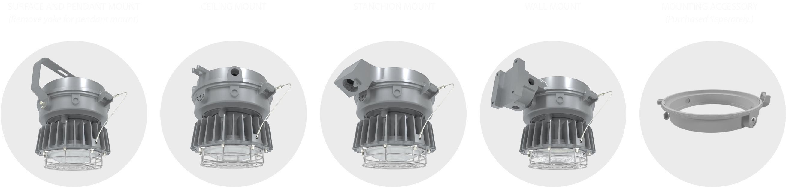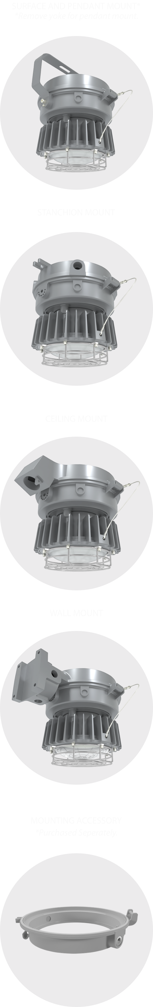 The HAZLED can be ordered with 4 different mounting options for use throughout an entire site. An adapter is also available for retroffiting HAZLED onto existing products.