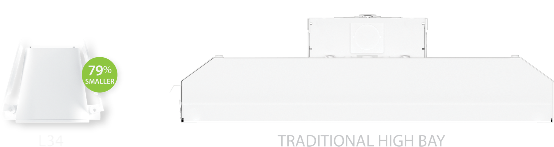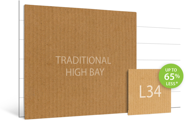 The L34 uses a far smaller box than standard linear high bays which cuts down use of material, consumes less energy to manufacture, and demands far less fuel to transport, drastically reducing greenhouse gases.