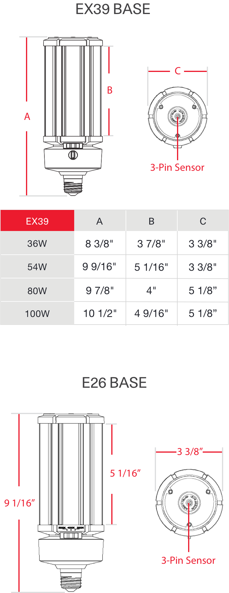 LED post tops were designed to replace up to 600W lamps in post top, low bay, bollard and high bay applications. Available in both Medium (E26) and Mogul (EX39) bases, these lamps also come in various color temperatures to maximize versatility.