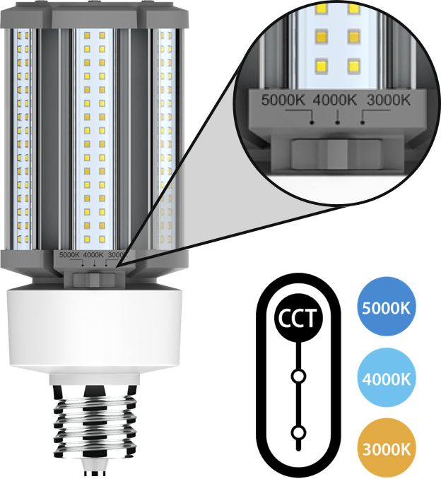 This post top lamp is field adjustable, allowing you to choose from three color temperatures with the flick of a switch, giving you the flexibility to customize an area's appearance with a single lamp!