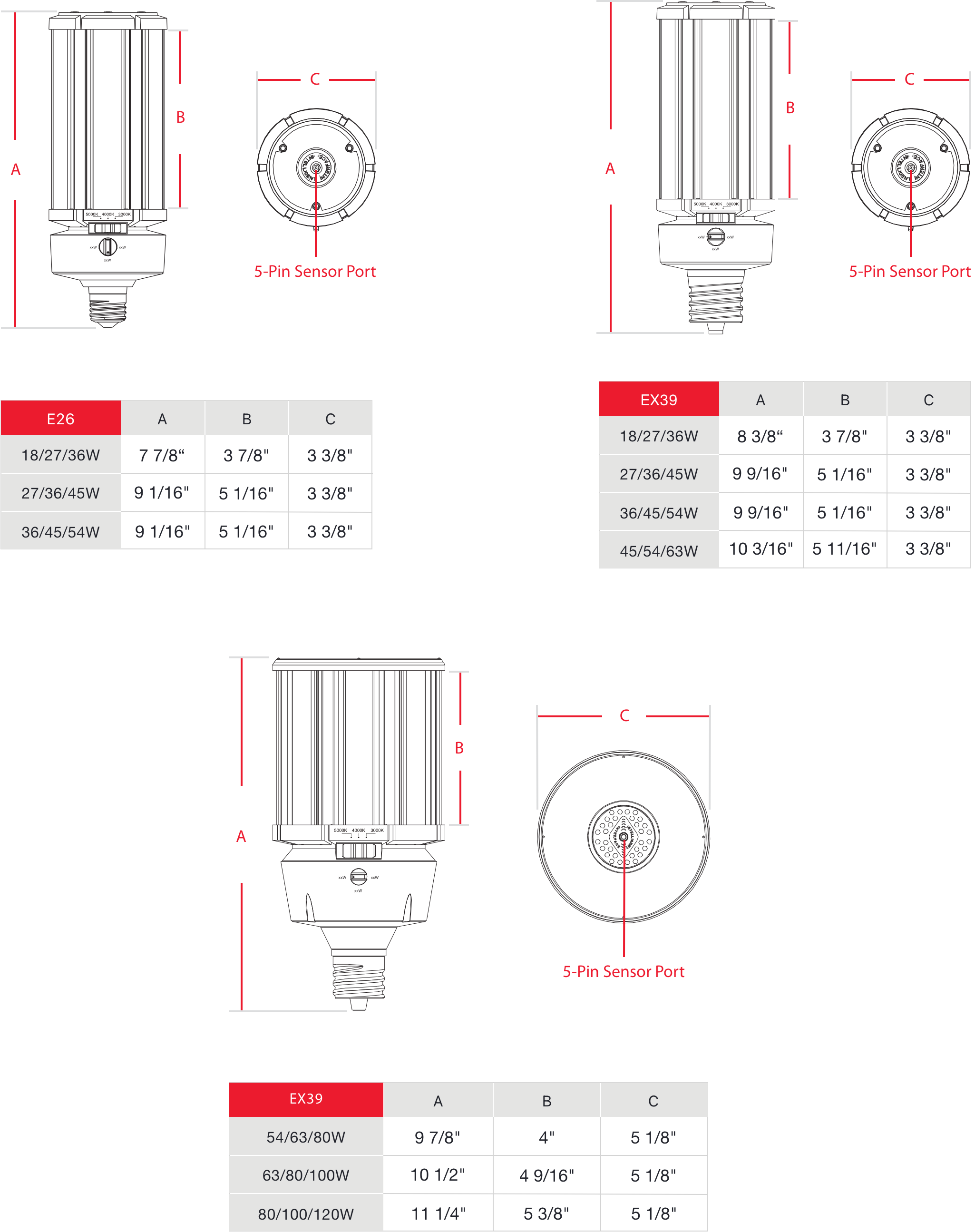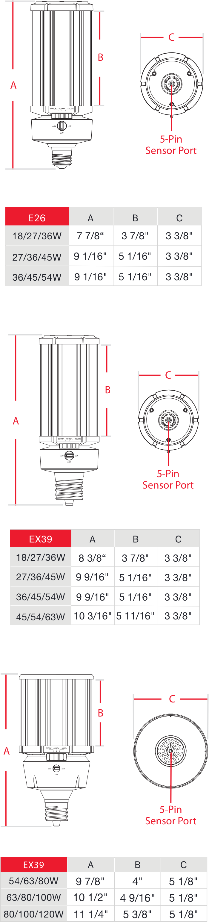These ultra-economy LED corn cob lamps can be installed by bypassing the ballast and wiring directly to line voltage. Available in 2 lumen outputs and 5000K CCT with an EX39 Base.