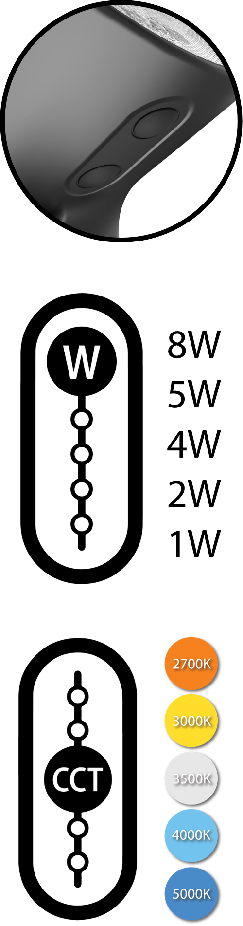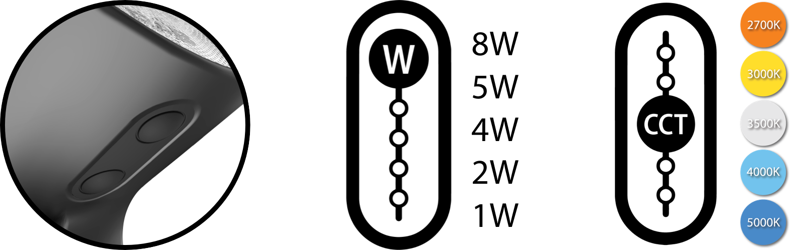 Fine tuning your light just got easier than ever…before and after installation! Say goodbye to those hard-to-reach switches. The LF17 has two handy buttons that let you quickly toggle through five wattages and five CCTs.