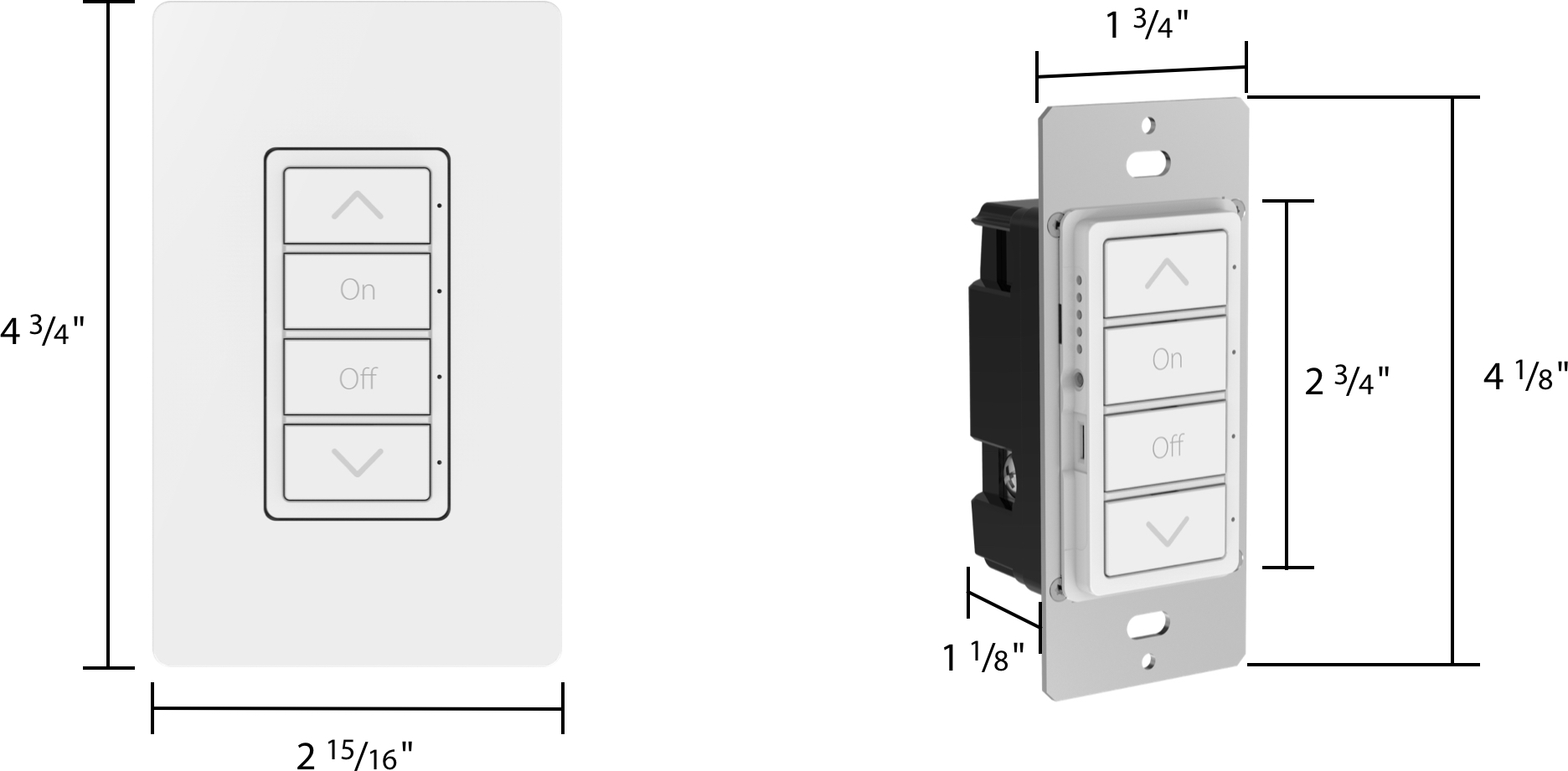 Customizing button commands on the Keypad is a breeze. Set them to switch lights on/off, dim them up/down, change the CCT and/or RGB color, and create Scenes for maximum control. Each button can control up to 3 Areas.