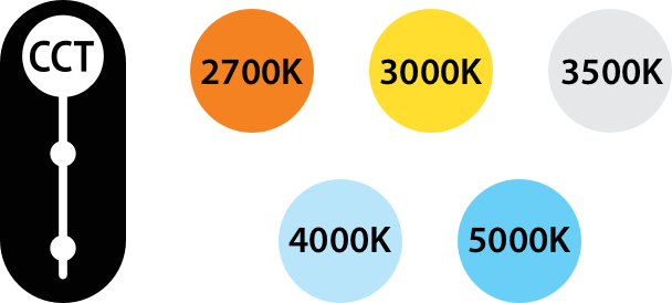 All models come with five selectable color temperatures 2700/3000/3500/4000/5000K to maximize flexibility on site.