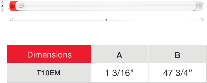 The T10EM tube is constructed of rugged, shatterproof thermoplastic with a nano-polycarbonate design that provides superior light distribution and eliminates discoloration and deformities.