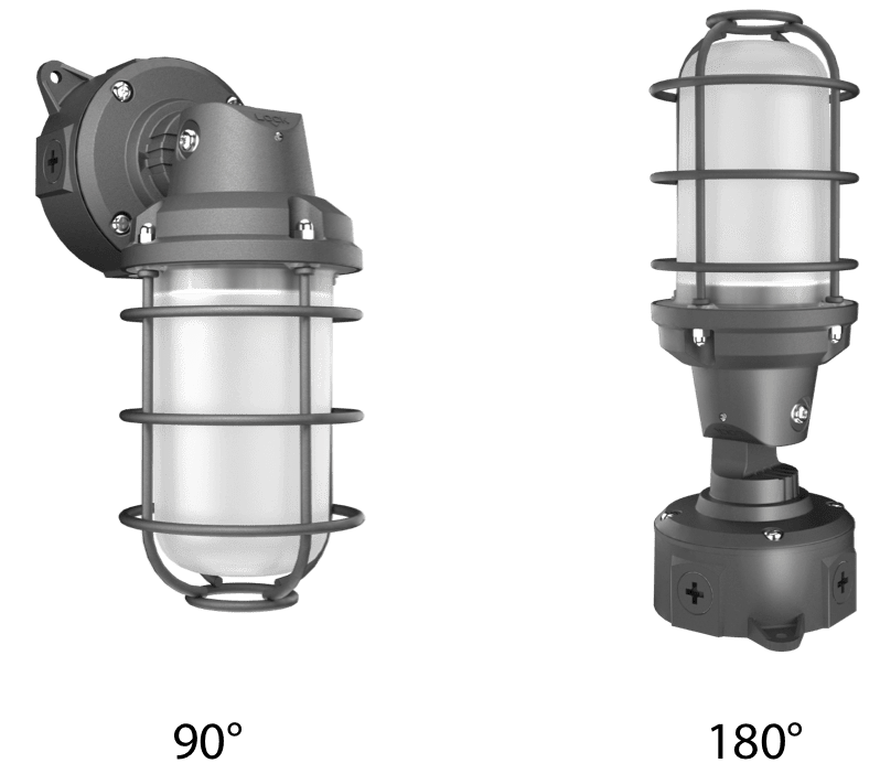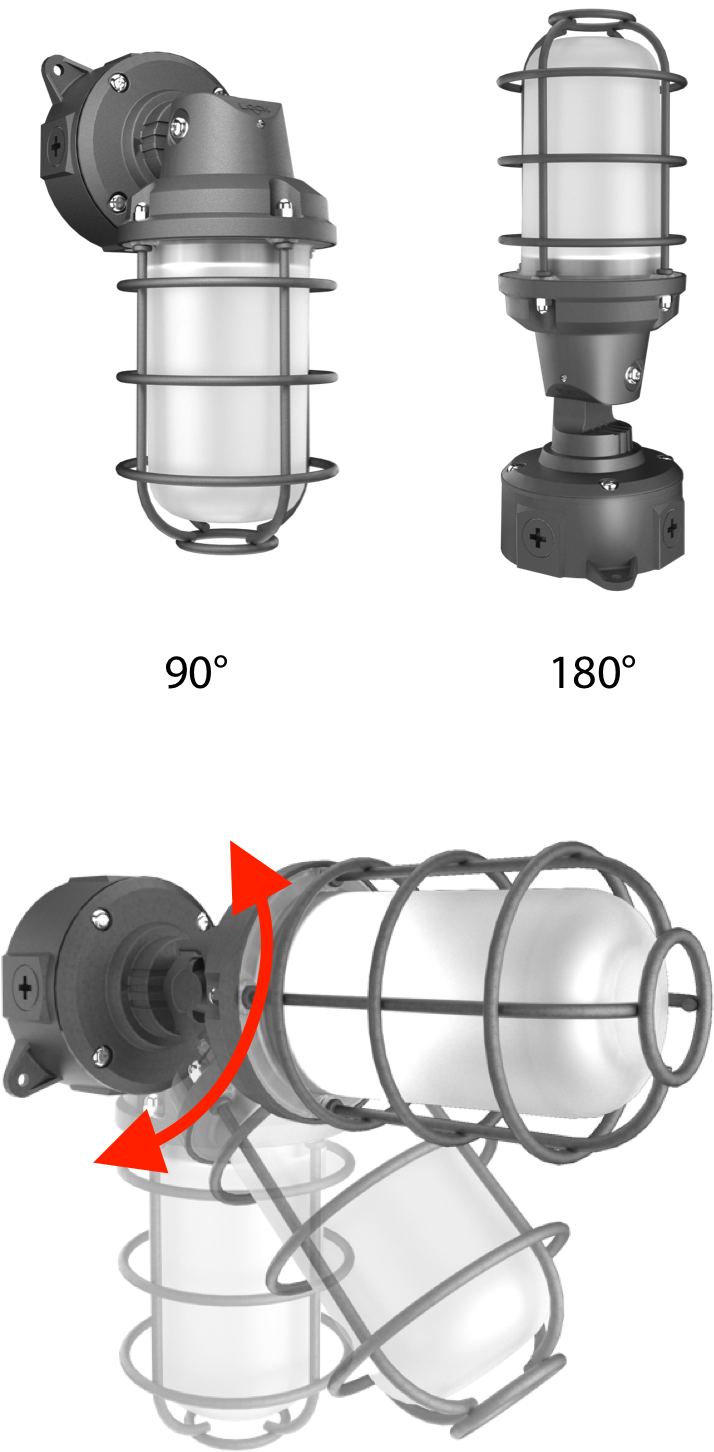 Three conduit entry points and multiple mounting options make installation simple in any location. The adaptable design includes 90° adjustability (with a locking mechanism), which makes it versatile enough for either ceiling or wall mounting.
