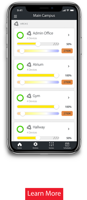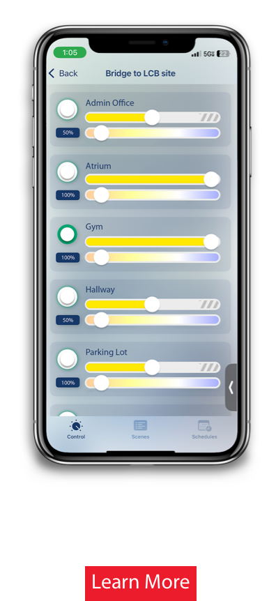 While your Lightcloud Blue area appears as a single device in the Lightcloud Enterprise app for streamlined management, you retain granular control through the Lightcloud Blue app for day-to-day adjustments. This dual-interface approach combines high-level system oversight from anywhere with precise local control, giving you the best of both worlds.
