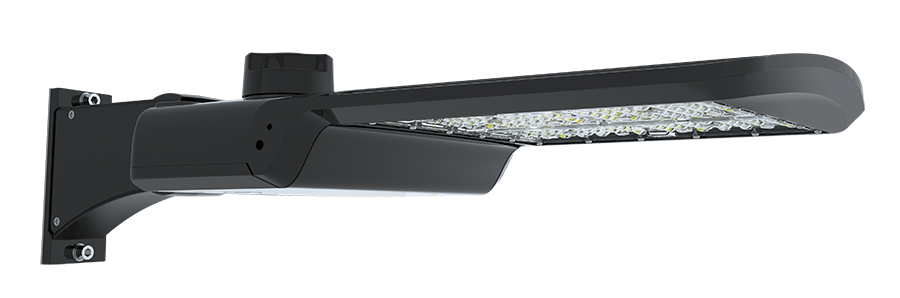 Universal mounting arm compatible for hole spacing patterns from 1" to 5 1/2" center to center. Round Pole adapter plate included as a standard. Easy slide and lock to mount fixture with ease. Round pole diameter must be >4" to mount fixtures at 90° orientation.