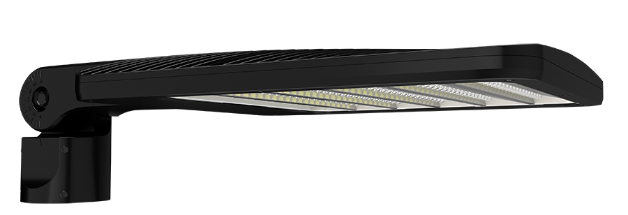 Car Dealership optics have a wide distribution with an intentional hot spot that helps to deliver eye-catching light to the front row of cars in a dealership lot while also minimizing "backspill" (light that is thrown back towards the street).