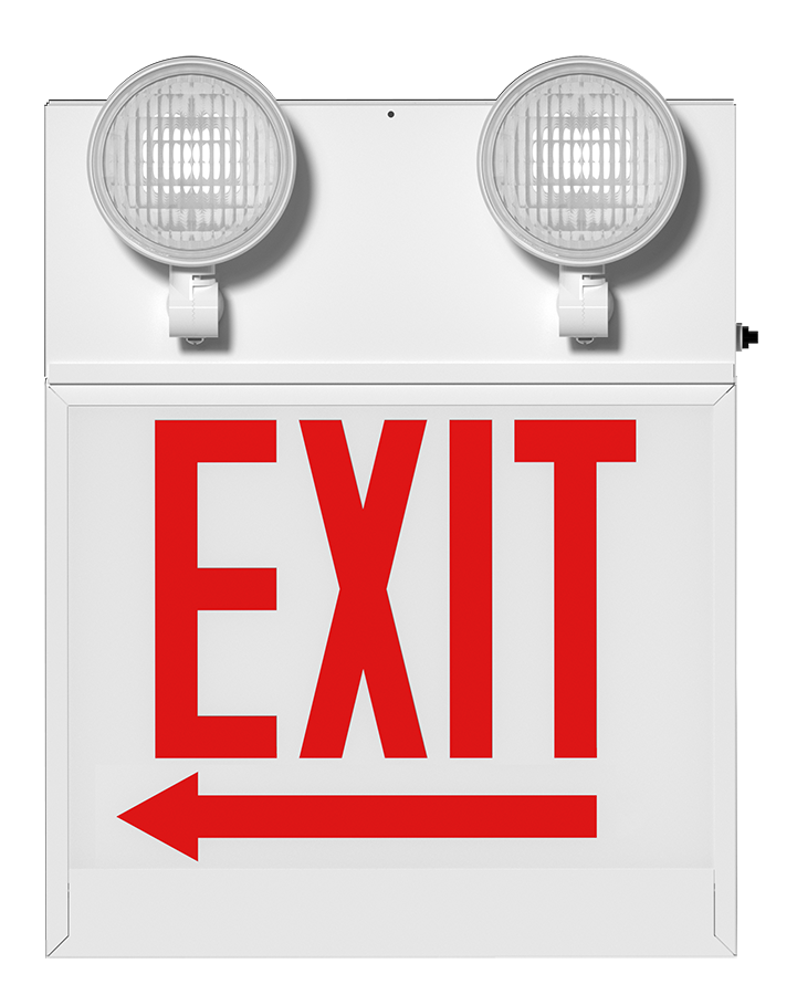 Chicago-approved exit sign combo with 90-minute emergency battery backup unit.