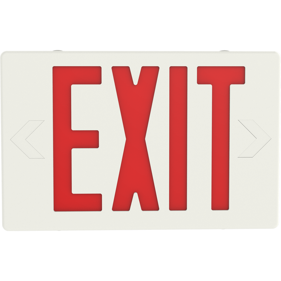 Exit sign with remote capability and 90-minute emergency battery backup unit.