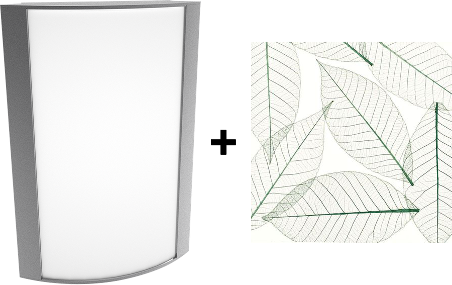 Acrylic lens with green leaves print. See