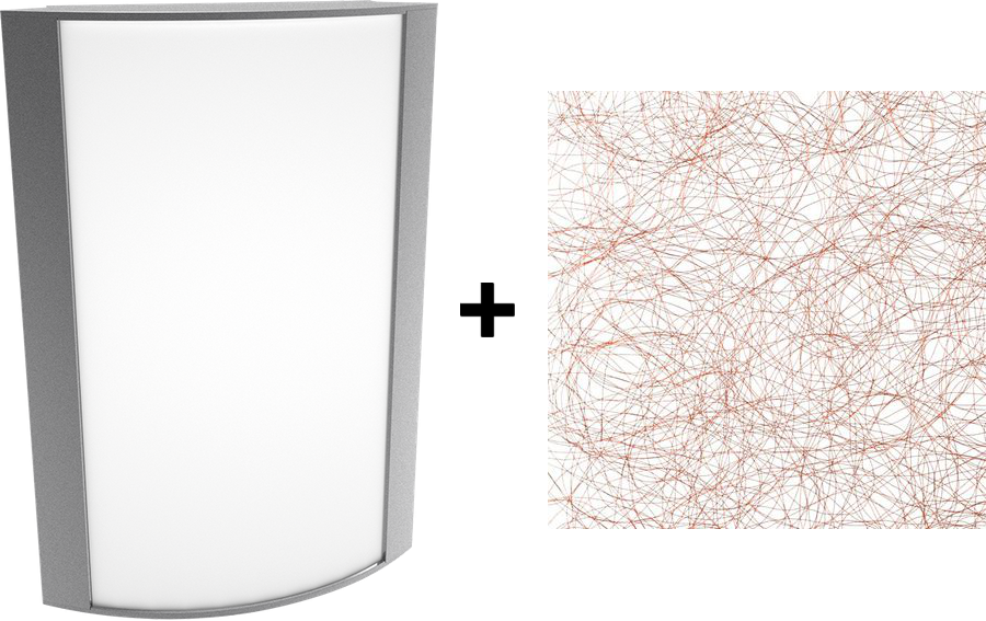 Acrylic lens with metallic spun copper print. See installation sheet for cleaning instructions.