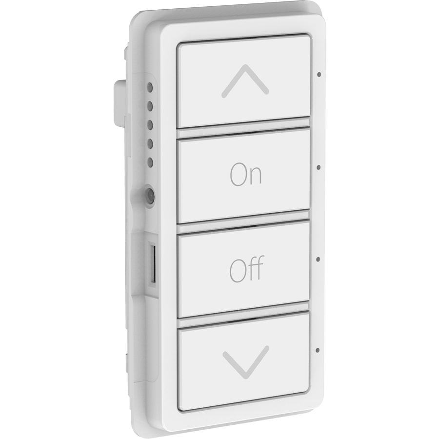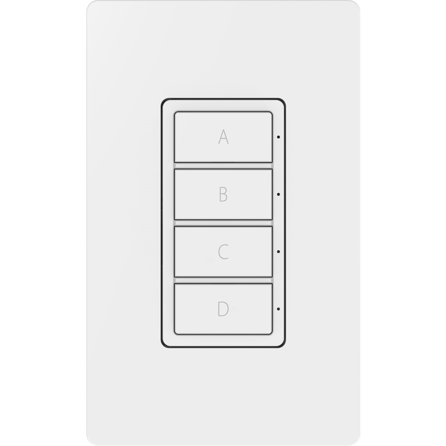 This 4-button scene selector connects to 120-277V circuit, no load required. Each button can be configured to control hundreds of lights.