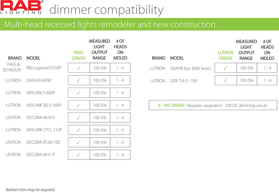 TRIAC compatible dimmer as low as 10%. See compatibility guide here.
