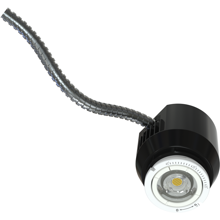 Adjustable 25° to 45° beam angle via rotating lens assembly