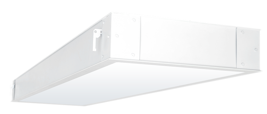 Modular splice box/driver compartment for quick installation. Integral Tee-grid ceiling clips make installation easy and secure.