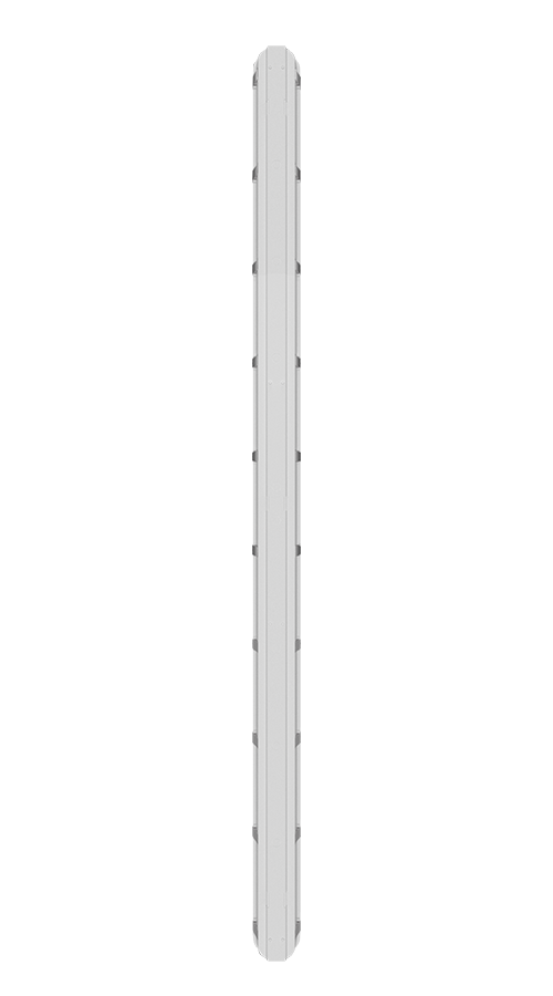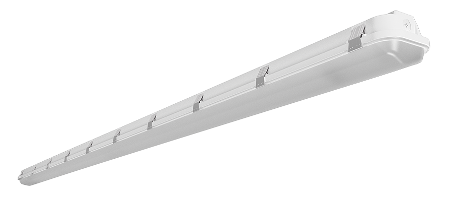Quick-mount, stainless steel snap on brackets supplied for surface mounting. V-Hook brackets supplied standard for suspending the fixture.