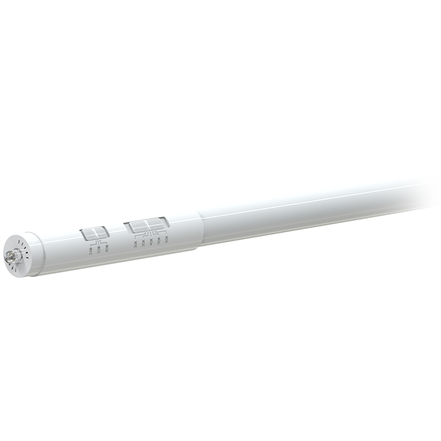Field-adjustable power and color temperature double ended type B tubes with interchangable base type.