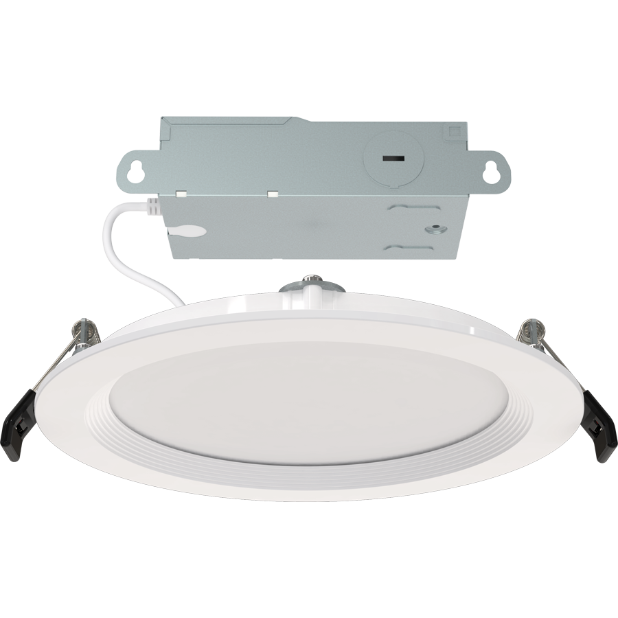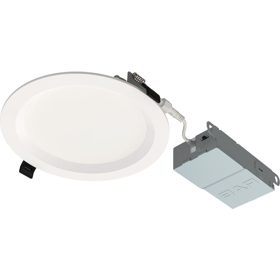 Bulk packaged contractor friendly, 4" and 6" wafers with selectable wattage and CCT that boast 90 CRI. Designed for 120V use and TRIAC/ELV dimming. Available with smooth or baffle trim