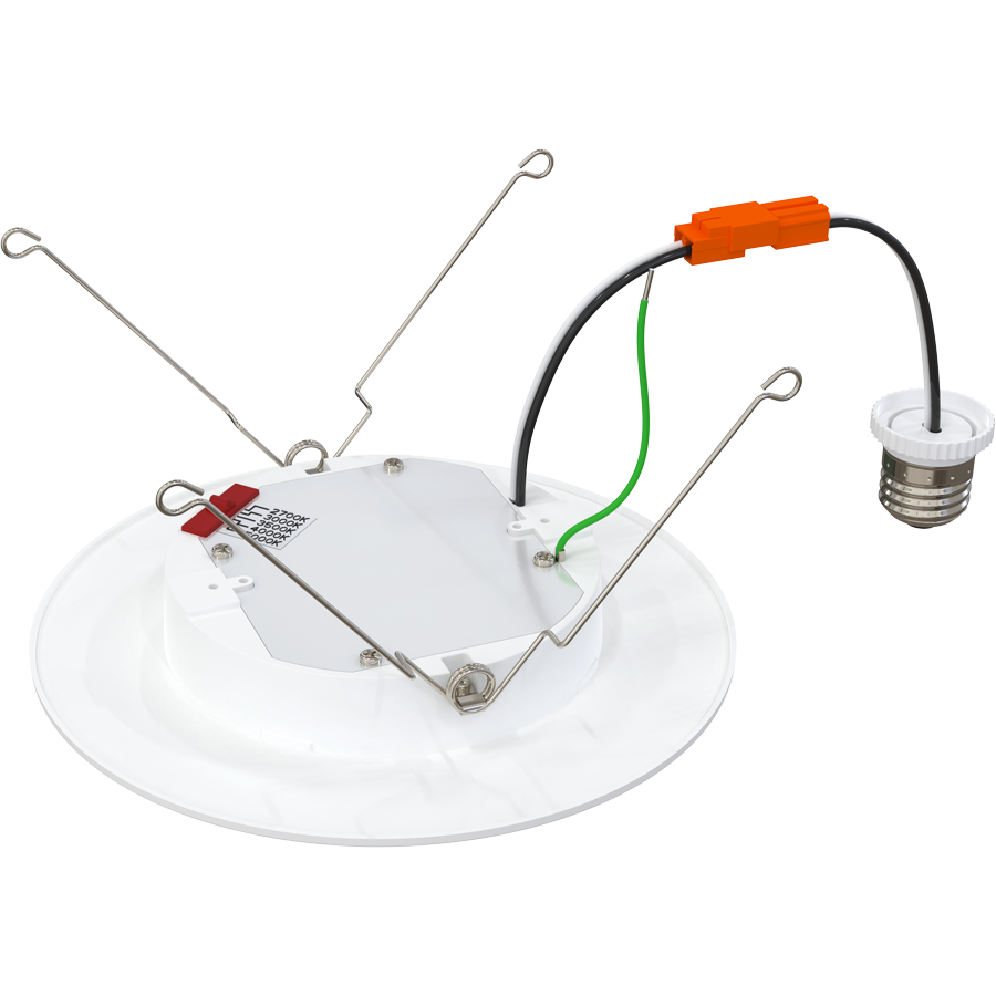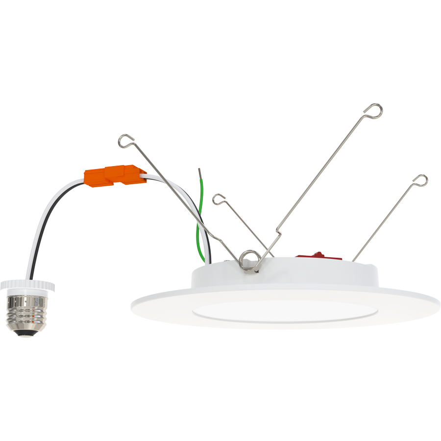 Looks like a wafer-style downlight from below the ceiling but installs into existing recessed housings.