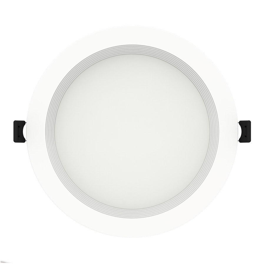 Round, edge-lit wafers with a slim form factor and selectable color temperatures. Available in 3", 4", 5", 6", and 8" models with either smooth or baffle trim, all with 90 CRI and TRIAC/ELV dimming.