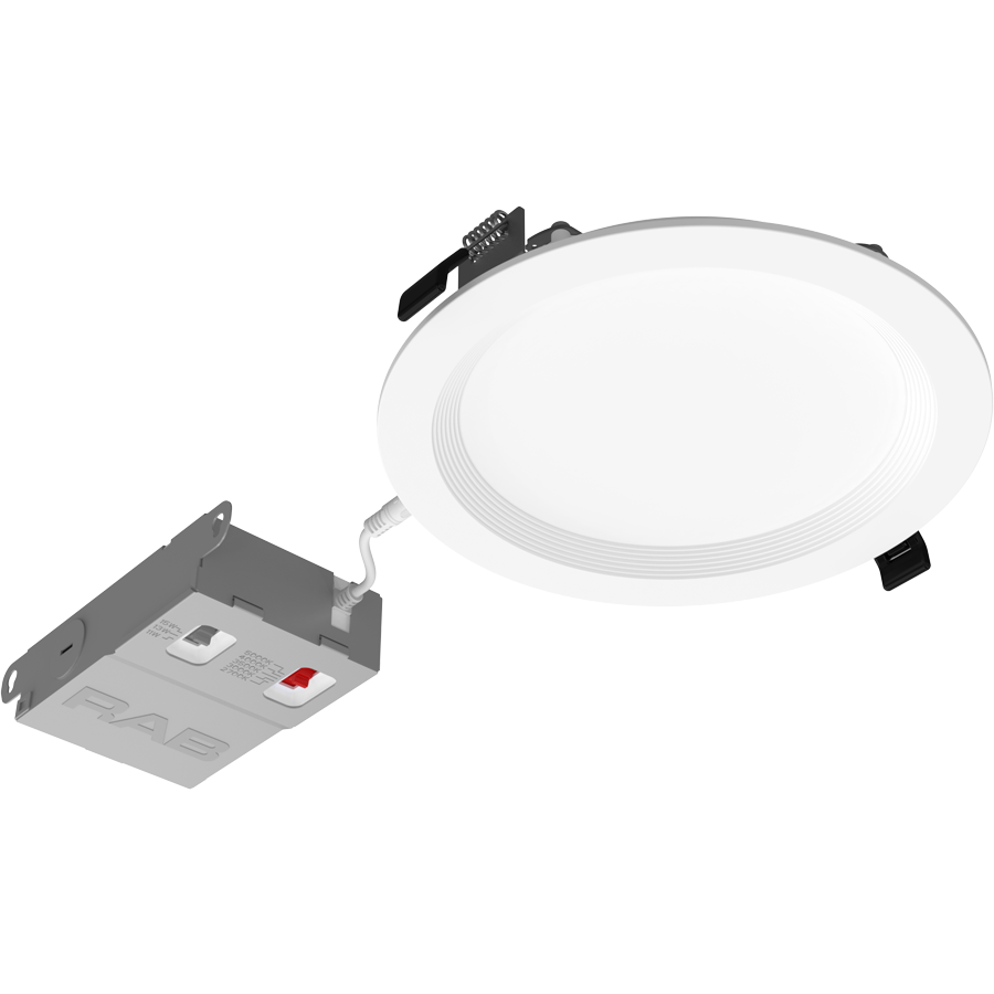 4" and 6"wafers with selectable wattage and CCT that boast 90 CRI. Designed for 120-277V use and TRIAC/ELV dimming. Available with smooth or baffle trim.