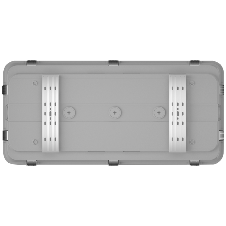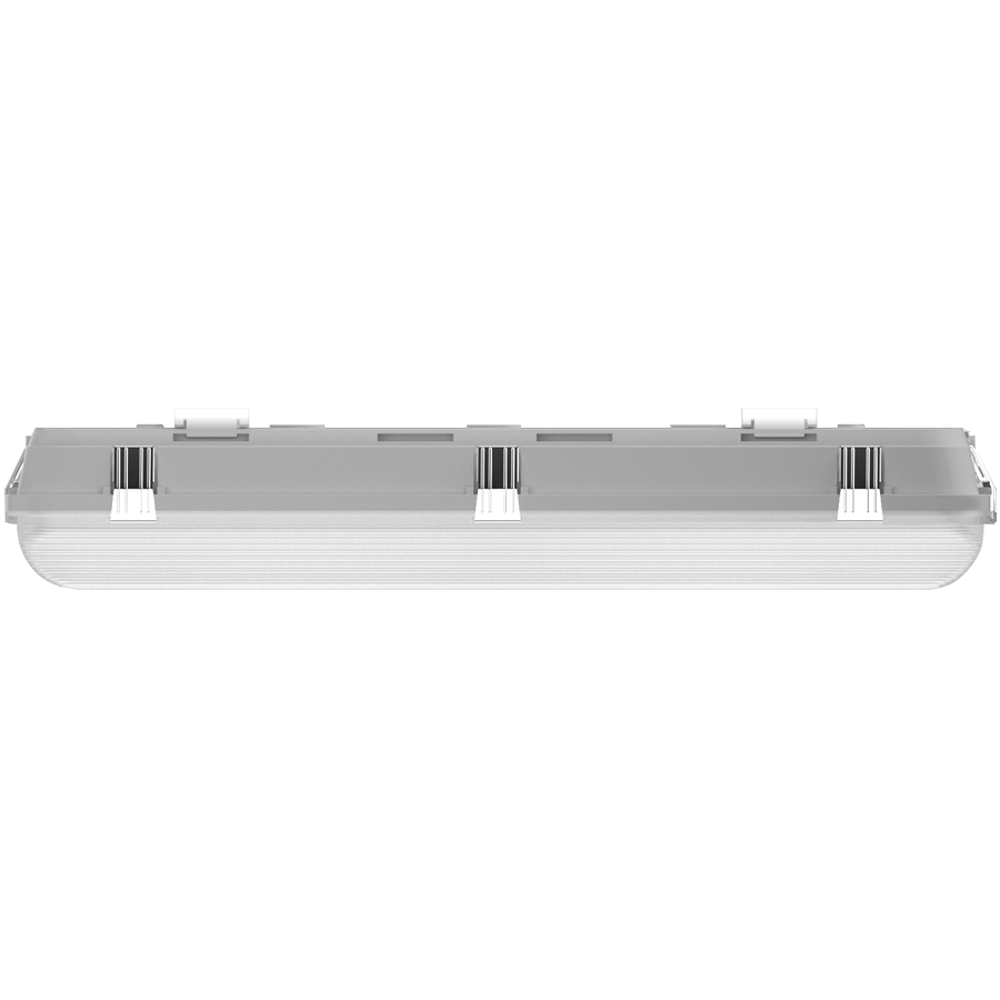 Quick-mount, stainless steel snap on brackets supplied for surface mounting. V-Hook brackets supplied standard for suspending the fixture.