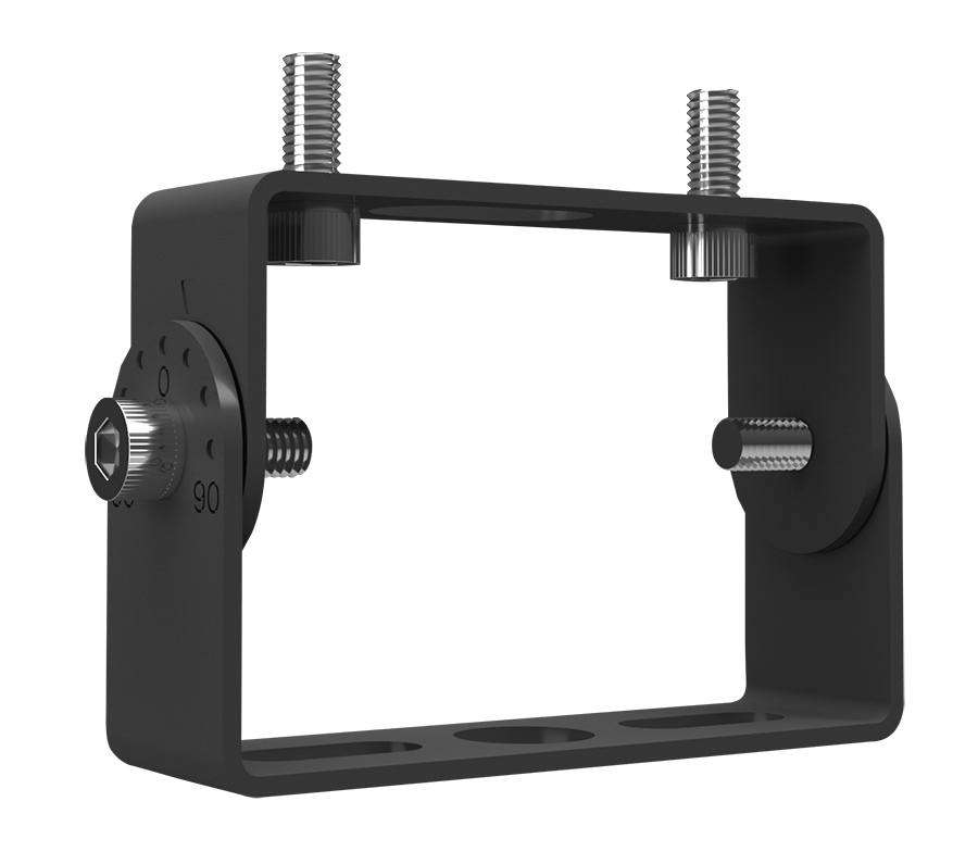 Robust knuckle mount with 180° adjustable swivel arm. Tilt angle in 10° increments. Trunnion kit is included.