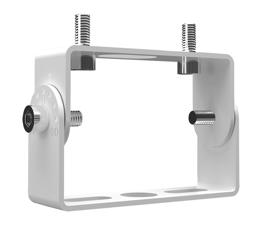 Robust knuckle mount with 180° adjustable swivel arm. Tilt angle in 10° increments. Trunnion kit is included.